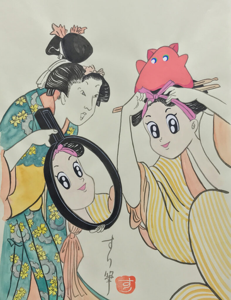 様々な経験をする中で、自身のルーツを基に現代アートに視線を向けアーティスト、イラストレーターとして活動する。